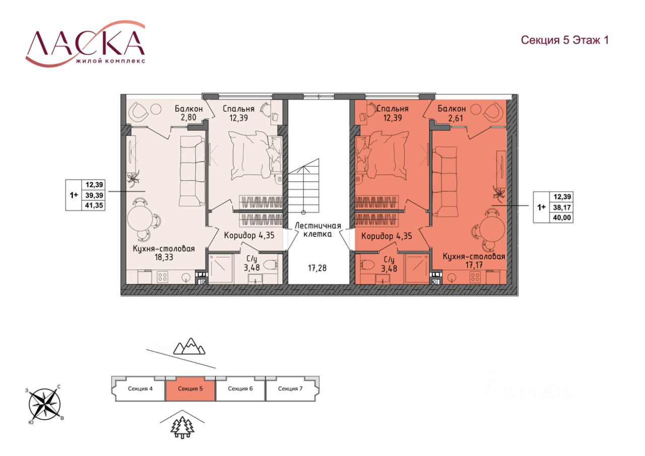 На каждом этаже всего 2 квартиры, что обеспечивает приватность.