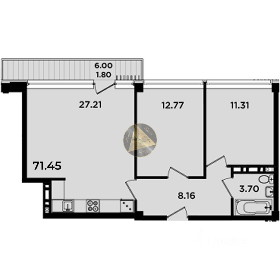 Общая площадь квартиры 71.45 м2