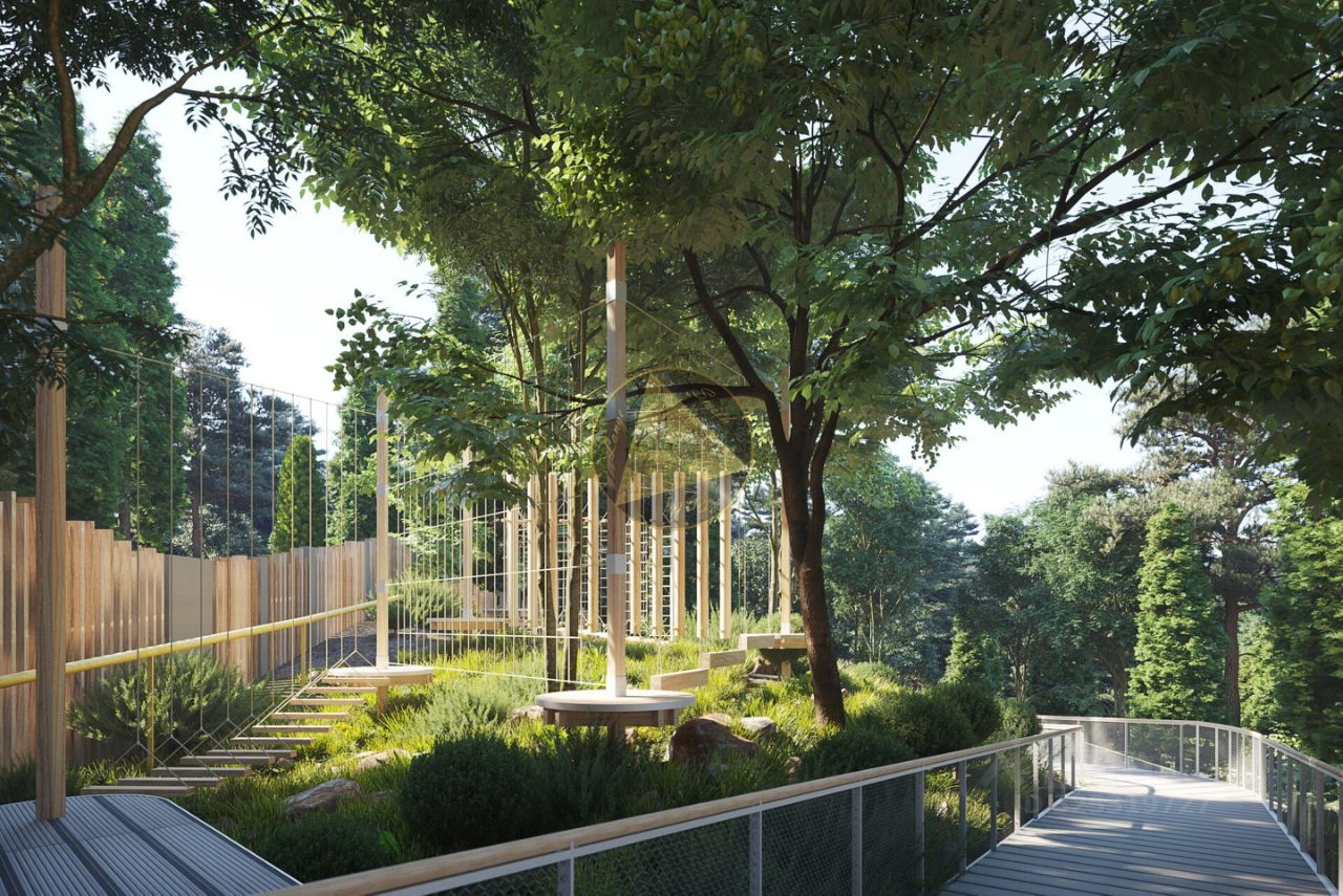 Комплекс находится на закрытой охраняемой территории с парком, в котором обустроены аллеи, зоны отдыха и кипарисовая роща.