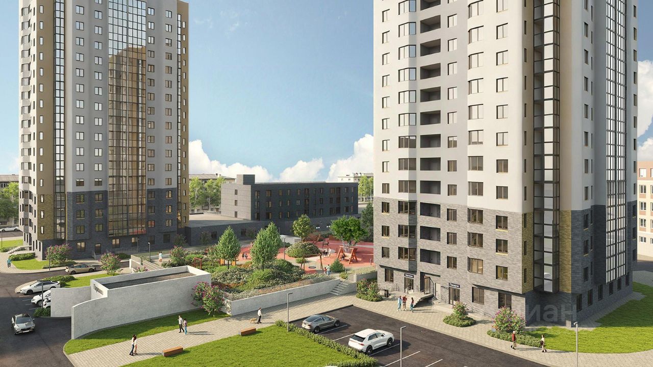 Жилые дома образуют квартал, оборудованный детскими и спортивными площадками.