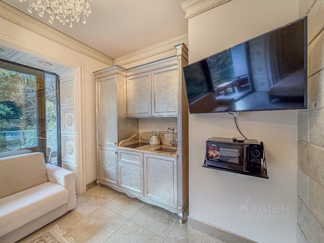 Студия с дизaйнeрским рeмонтом и видом на гoры