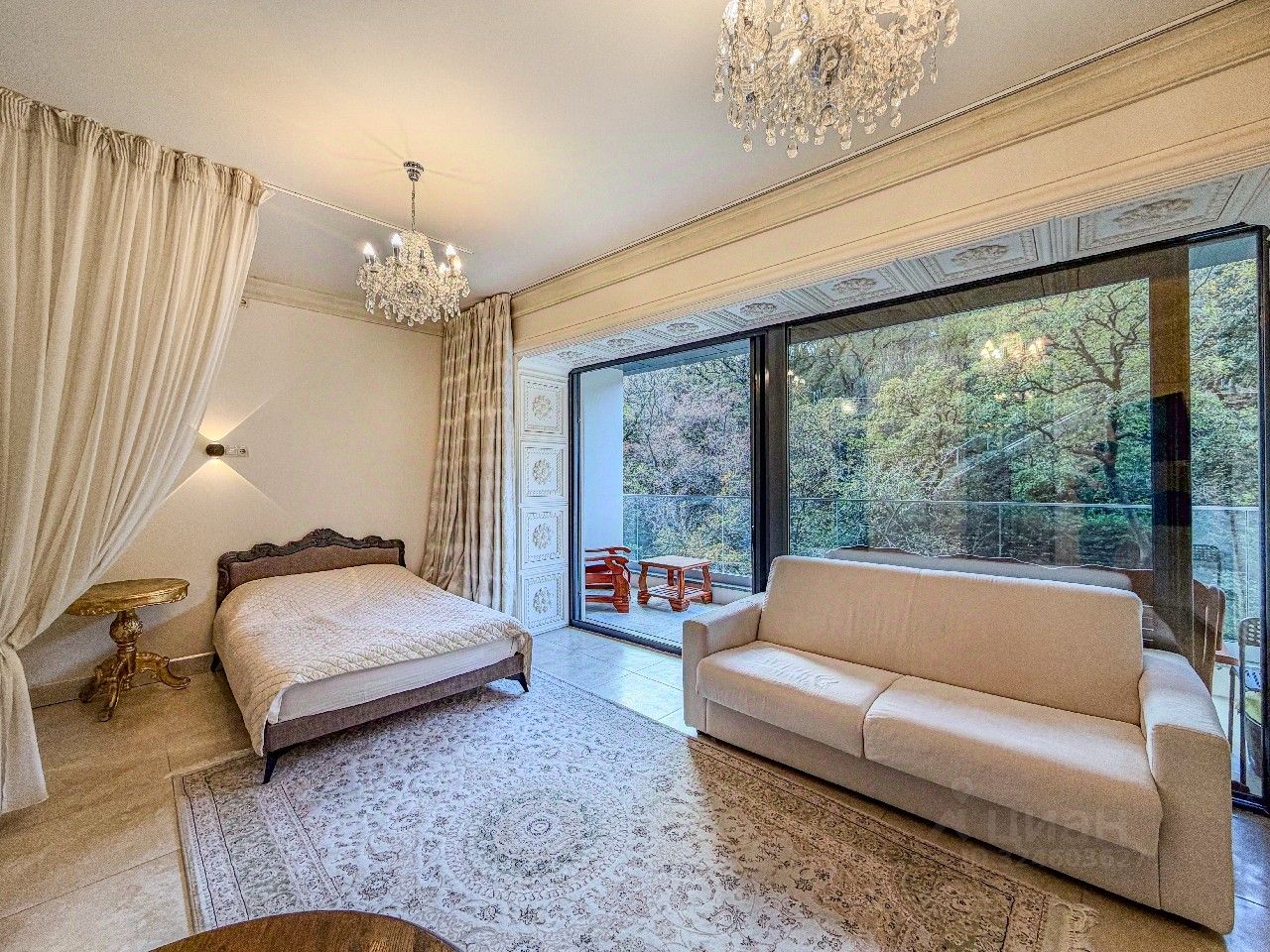 Из окон открывается живописный вид на горные склоны и зелень Приморского парка, создающий ощущение уюта и гармонии с природой.