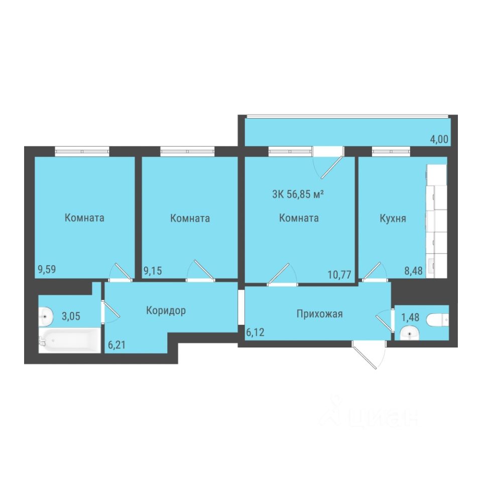 Общая площадь57,05 м2