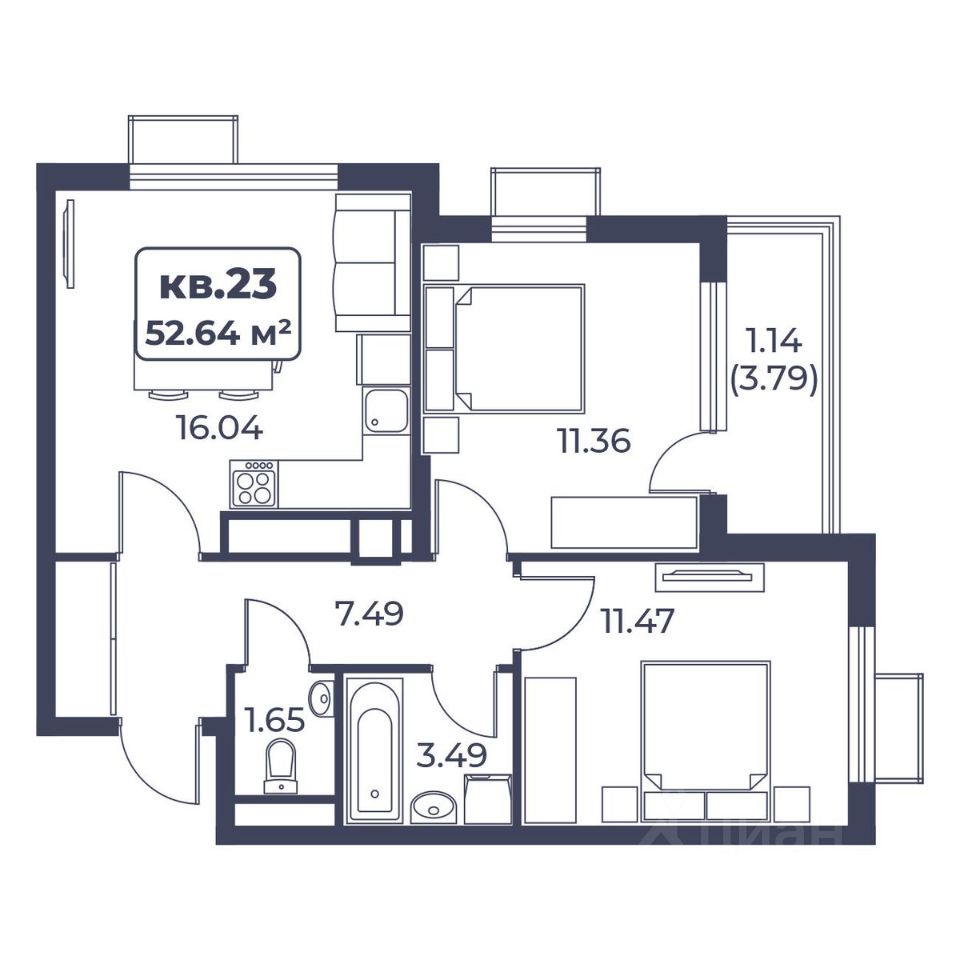 Общая площадь52,64 м2