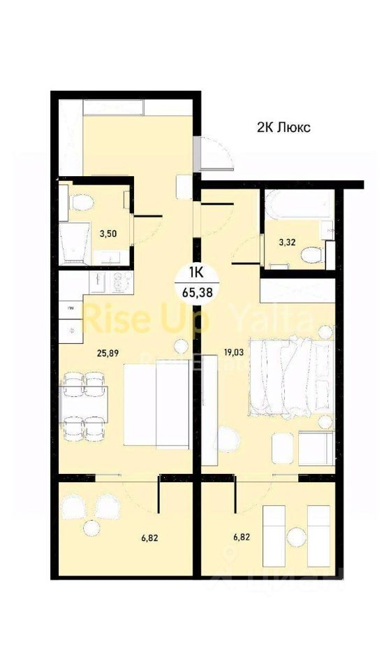 Продается двухкомнатный апартамент ''Люкс'' расположен на 3 этаже общей площадью 65,38 м2 с выходом на балкон.