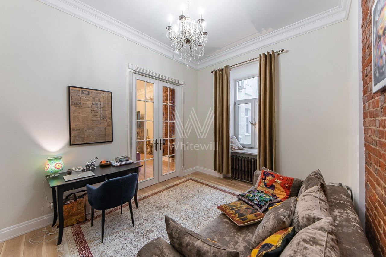 Эксклюзив агентства. Предлагается на продажу 4-х комнатная квартира с дизайнерским ремонтом в фасадном доме в пешей доступности от метро Маяковская. Дом индивидуальной постройки с огороженной и охраняемой территорией 24/7, включая наземную парковку. Все окна выходят в тихий двор.