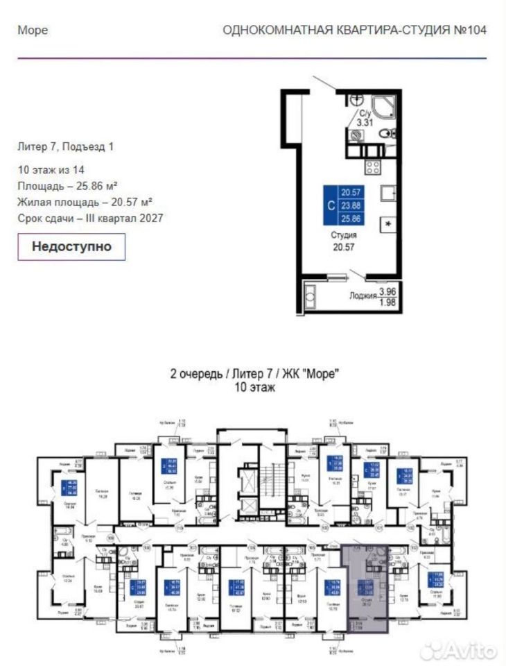 2 очередь Площадь: 25,8 м² Панорамное остекление, открытый балкон, вид на озеро и море Предчистовая отделка — можно сделать ремонт под себя Парковка: надземный паркинг в шаговой доступности Территория: с тематическими зонами отдыха, детскими, спортивными площадкой и прогулочной аллеей