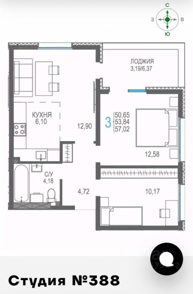 Общая площадь57,02 м2