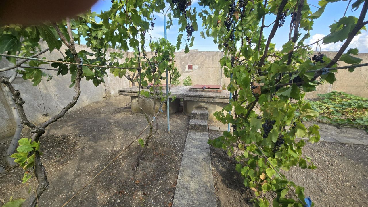 Дом двухэтажный, каменный, на участке 6.61сотка. Огорожен бетонным забором, двое металлических ворот и калитка, можно загнать на территорию в общей сложности 4 авто. Имеется две хозстройки, летний душ и туалет (на улице), два колодца с металлическими крышками для хранения воды, три ёмкости для сбора дождевой воды (общий объем около 18м). На участке есть фруктовые деревья, навесы для винограда, огород. Вода есть и во дворе и так же в доме, есть счетчик. Газ заведен, подключен, есть счетчик. выведена газова труба в котельную, не подключена, стоит старый твердотопливный котел(не использовался). Дом 175.4м², подвал 33.9м² 1й этаж - 2 комнаты(13.5м² и 17.7м²), холл, кухня(9,1м²), корридор, котельная(16,9м²).