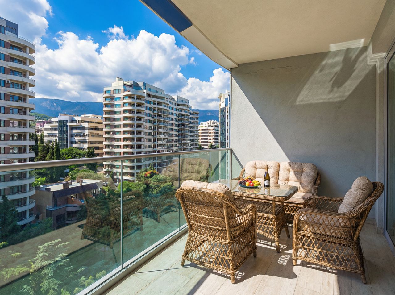 Бассейн-инфинити на крыше (вид — огонь!) СПА-центр и тренажерный зал прямо в доме Собственный ресторан и лобби-бар Подземный паркинг (ваша машина всегда в безопасности) Охрана 24/7 и ресепшн, как в отеле Расположение пожалуй лучшее в Ялте. Рядом буквально всё: лучшие рестораны, кафе, SPA, магазины и теннисные корты.