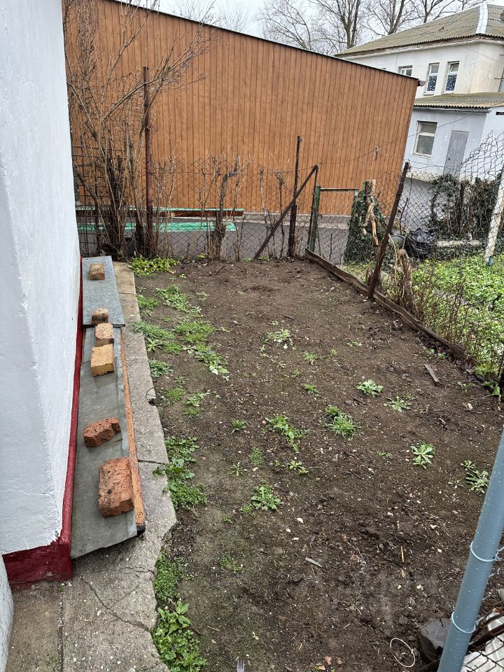Под окнами есть огороженный участок земли около 0.8 - 1 сотки (на фото после квартиры), закреплённой за квартирой. На ней расположена летняя кухня.