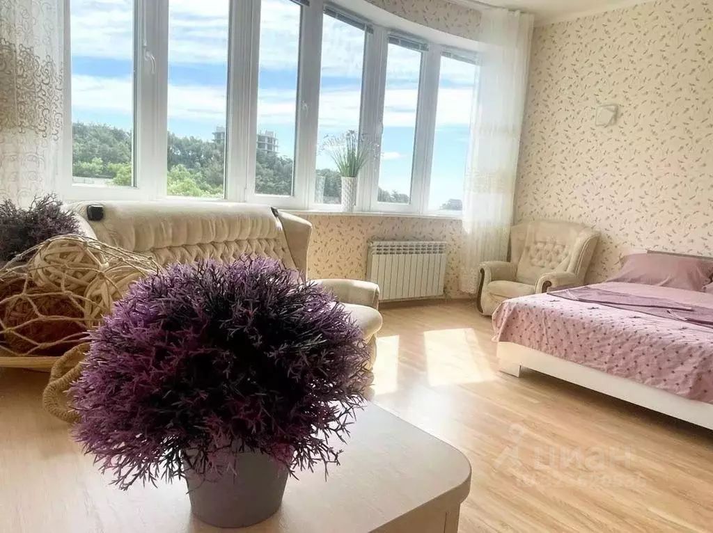 Квартира сдается до мая! Сдаётся просторная, светлая квартира - студия площадью 44 кв.м., без учета лоджии. Квартира очень светлая за счет большого эркерного окна с видом на море! Есть необходимая мебель, бытовая техника, посуда, пастельное бельё. Большая лоджия создаёт дополнительное пространство, которое можно использовать как для работы так и для духовных практик... Малоквартирный дом, идеальная чистота во дворе и в подъезде дома. Вокруг дома современной постройки, улица освещается, тих и спокойно. Минимальный срок сдачи в аренду от 2-х месяцев. Коммунальные платежи оплачиваются отдельно по счетчикам и квитанциям. В цоколе есть большое помещение для хранения крупногабаритных вещей. По просмотру звоните заранее!