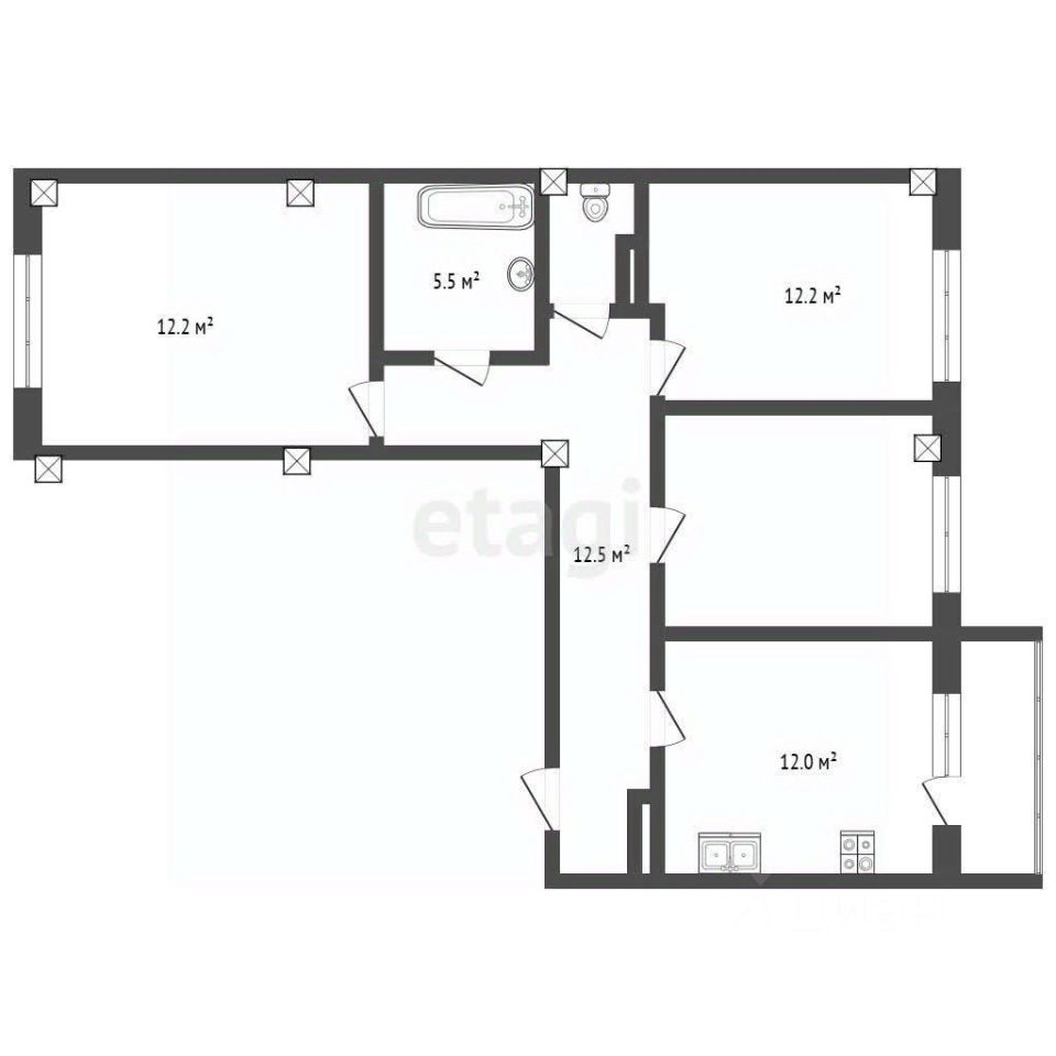 Продается просторная трехкомнатная квартира на четвертом этаже восьмиэтажного дома, площадью 72,8 кв. м в курортной части Евпатории, всего в 20 минутах ходьбы от моря.
