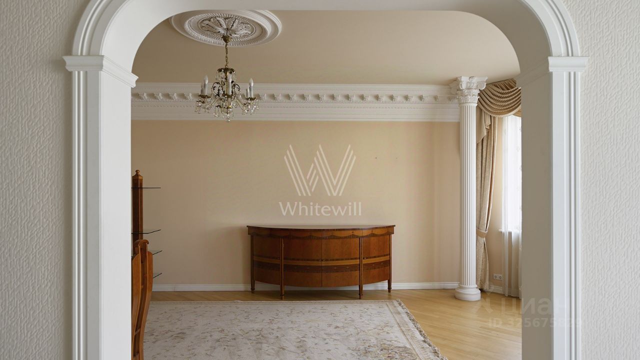 Бонус партнёрам 50%. Просторная квартира с 3-мя спальнями общей площадью 170 м² в доме ''Рыбников переулок, 4'' на Чистых прудах. Светлый лаконичный интерьер оформлен в классической стиле, украшен изящной лепниной, колоннами. Окна обрамлены многослойными шторами в теплых кремовых тонах.
