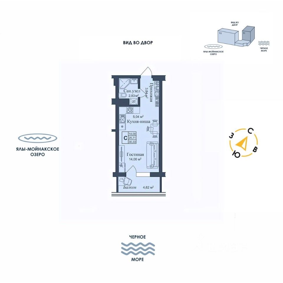 Продаётся студия-апартаменты в строящемся доме (Дом 20), срок сдачи: II-кв. 2028, общей площадью 30.33 кв.м., на 9 этаже. Современный комплекс апартаментов бизнес-класса в Евпатории, предлагающий комфортные апартаменты с панорамными видами и развитой инфраструктурой.