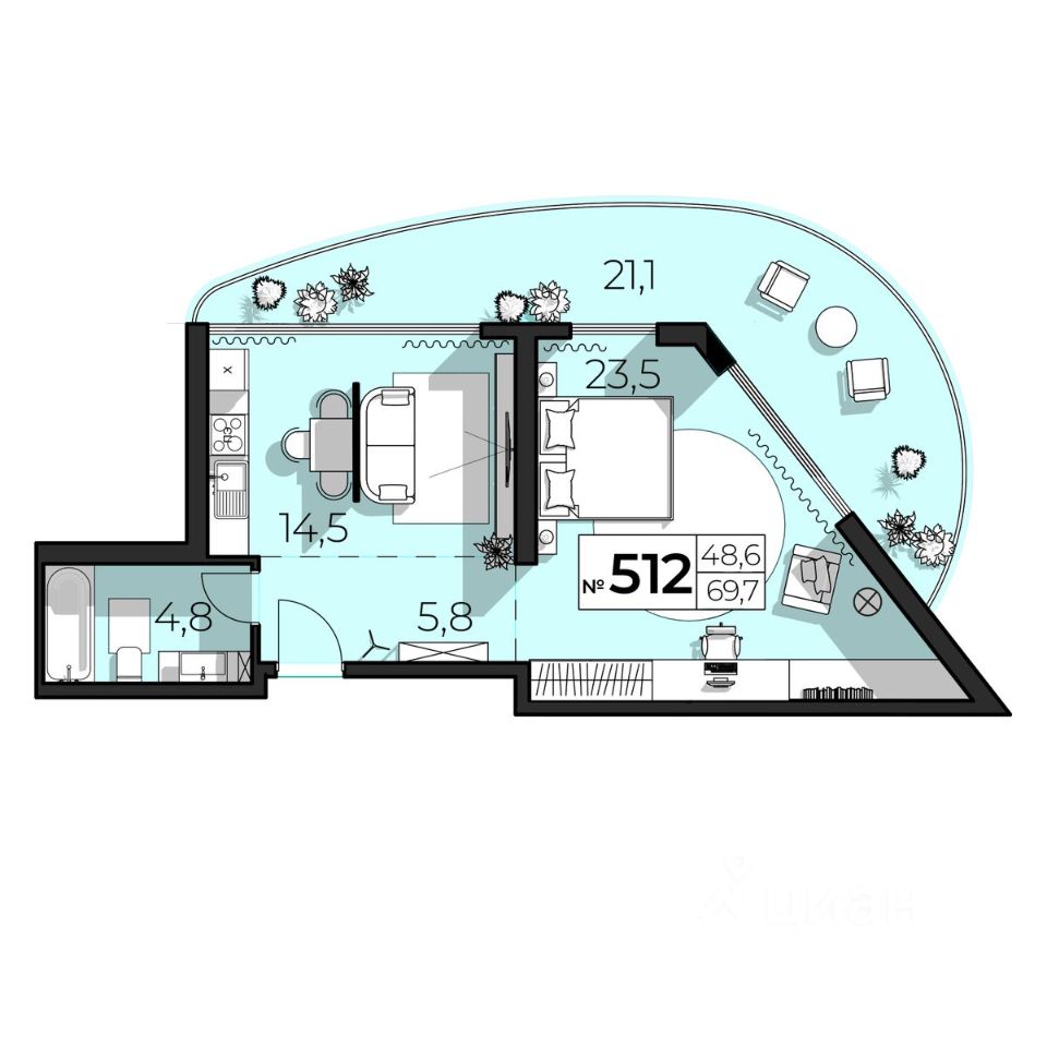Продаются 2-комнатные апартаменты в строящемся доме (Дом 46а), срок сдачи: II-кв. 2030, общей площадью 69.7 кв.м., на 5 этаже. Апарт-комплекс ''SkyPlaza 5.0'' от застройщика ''СЗ СМК ПЛЮС'' расположен по адресу: Республика Крым, г. Ялта, ул. Дражинского, 46 а