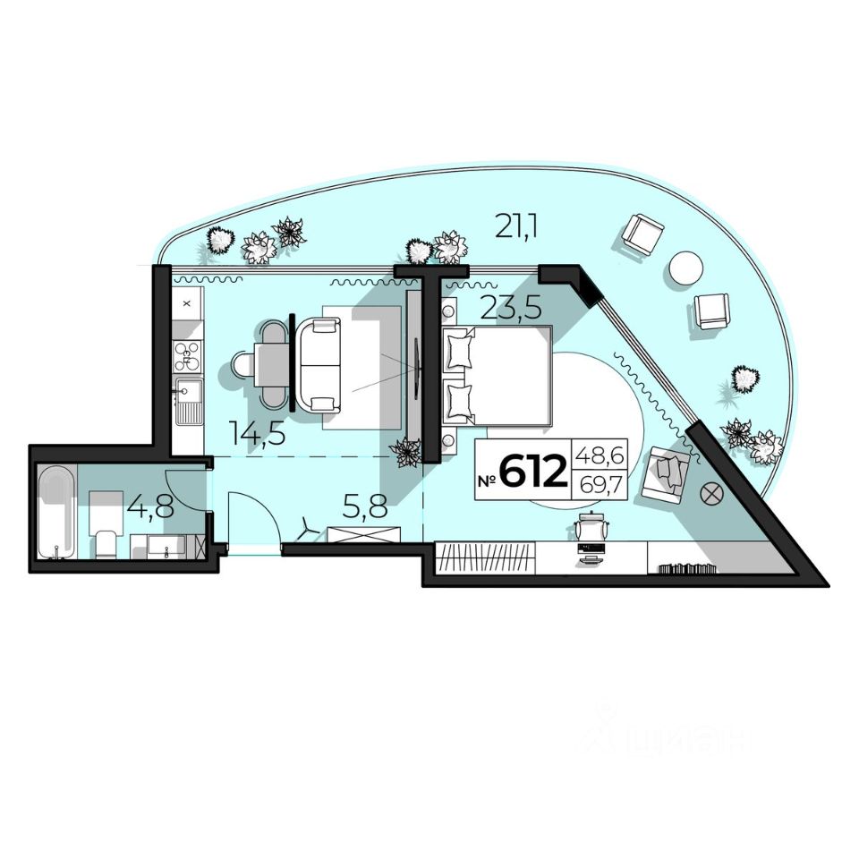 Продаются 2-комнатные апартаменты в строящемся доме (Дом 46а), срок сдачи: II-кв. 2030, общей площадью 69.7 кв.м., на 6 этаже. Апарт-комплекс ''SkyPlaza 5.0'' от застройщика ''СЗ СМК ПЛЮС'' расположен по адресу: Республика Крым, г. Ялта, ул. Дражинского, 46 а
