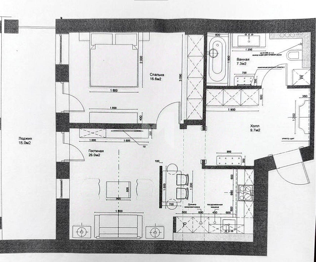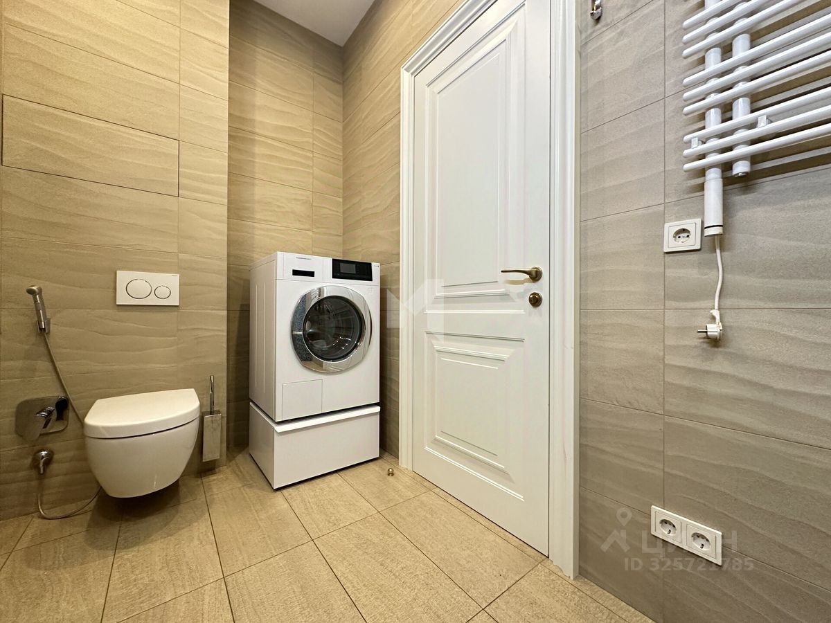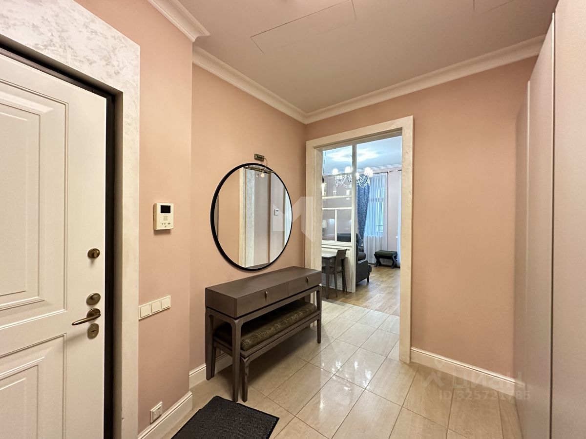 Просторная квартира площадью 59м². Планировка отличается эргономичностью и комфортом: просторная прихожая, плавно перетекающая в гостиную и кухню, основная спальня, кабинет или гостевая комната, большая гардеробная и два санузла. Особое внимание заслуживает главная ванная комната с роскошной джакузи. Климат-контроль обеспечивается централизованной приточно-вытяжной вентиляцией и системой кондиционирования.