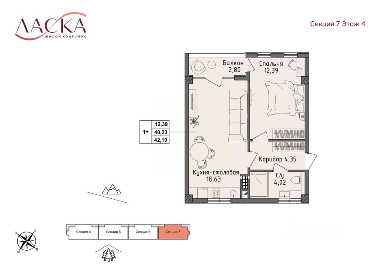 Общая площадь40,23 м2