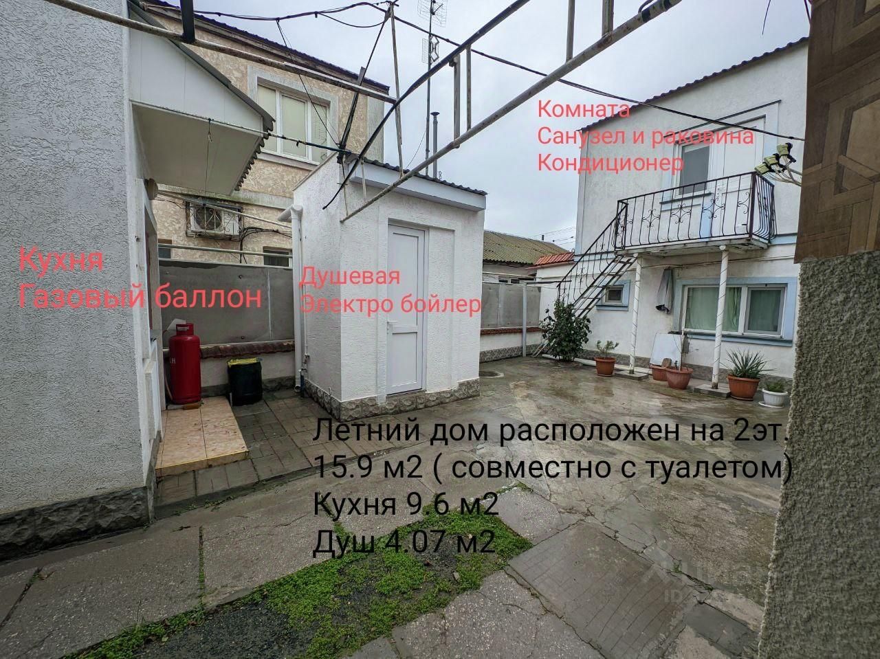 Летний дом расположен на 2эт. 15.9 м2 ( совместно с туалетом) Кухня на первом этаже 9.6 м2 Душ на первом этаже 4.07 м2