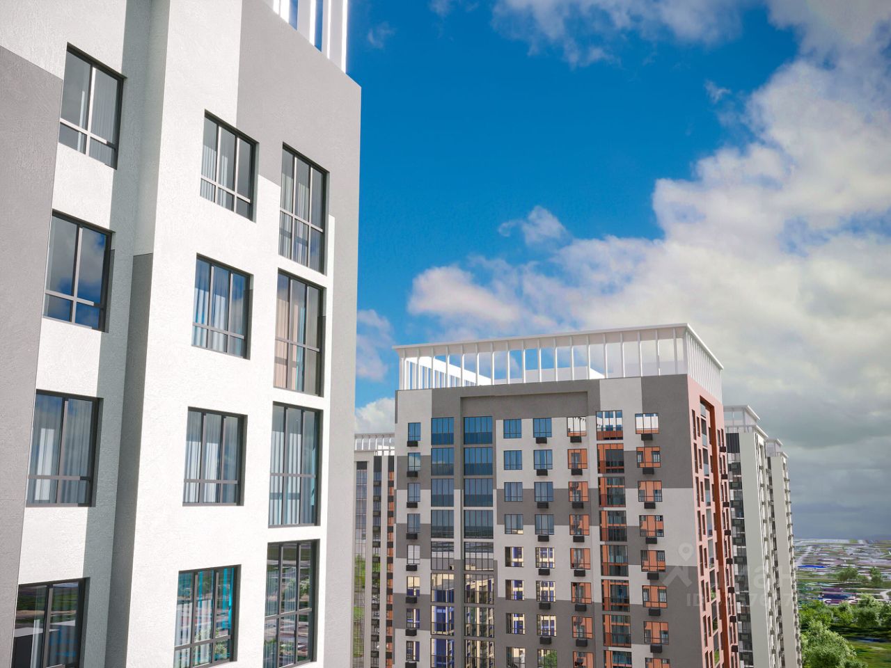 - высота потолков в квартирах — 2,85 м. Преимущества для жильцов: - Панорамные окна — максимум света и впечатляющие виды. - Застеклённые лоджии — дополнительное пространство для отдыха. - Террасы в квартирах на 2м этаже — возможность создать уютное место на открытом воздухе. - Закрытая дворовая территория на уровне 2го этажа — безопасность и уют без уличного шума. - Кладовые на -1 и 1 этажах — дополнительное пространство для хранения сезонных вещей. - 4 современных лифта — быстрое и комфортное перемещение. - Тёплый паркинг на 1м этаже — рассчитан на 165 машиномест.