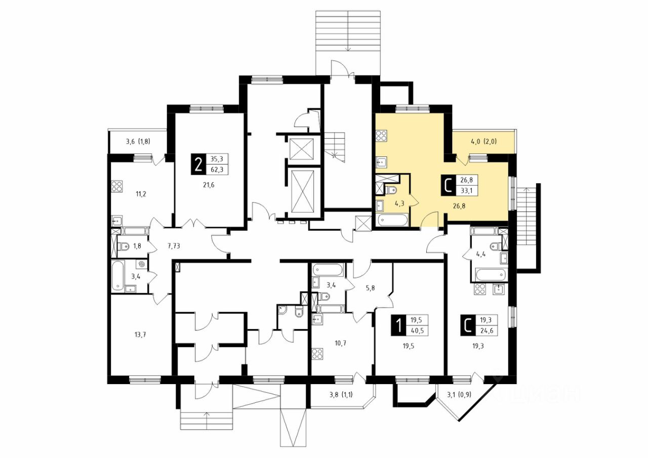 Продаётся студия в сданном доме (Корпус 43), срок сдачи: 4-кв. 2025, общей площадью 33.10 кв.м., на 1 этаже.