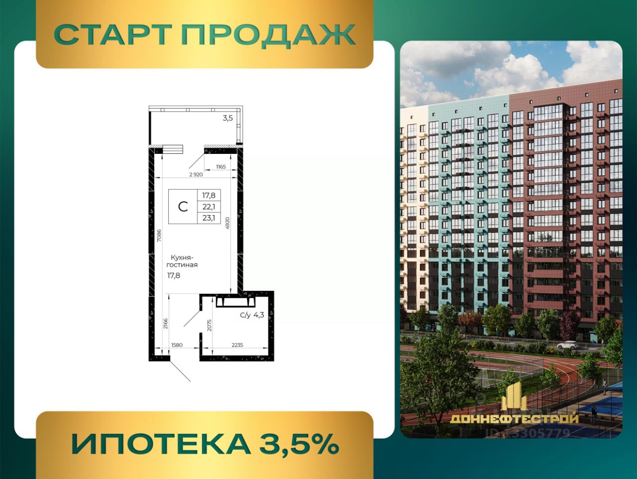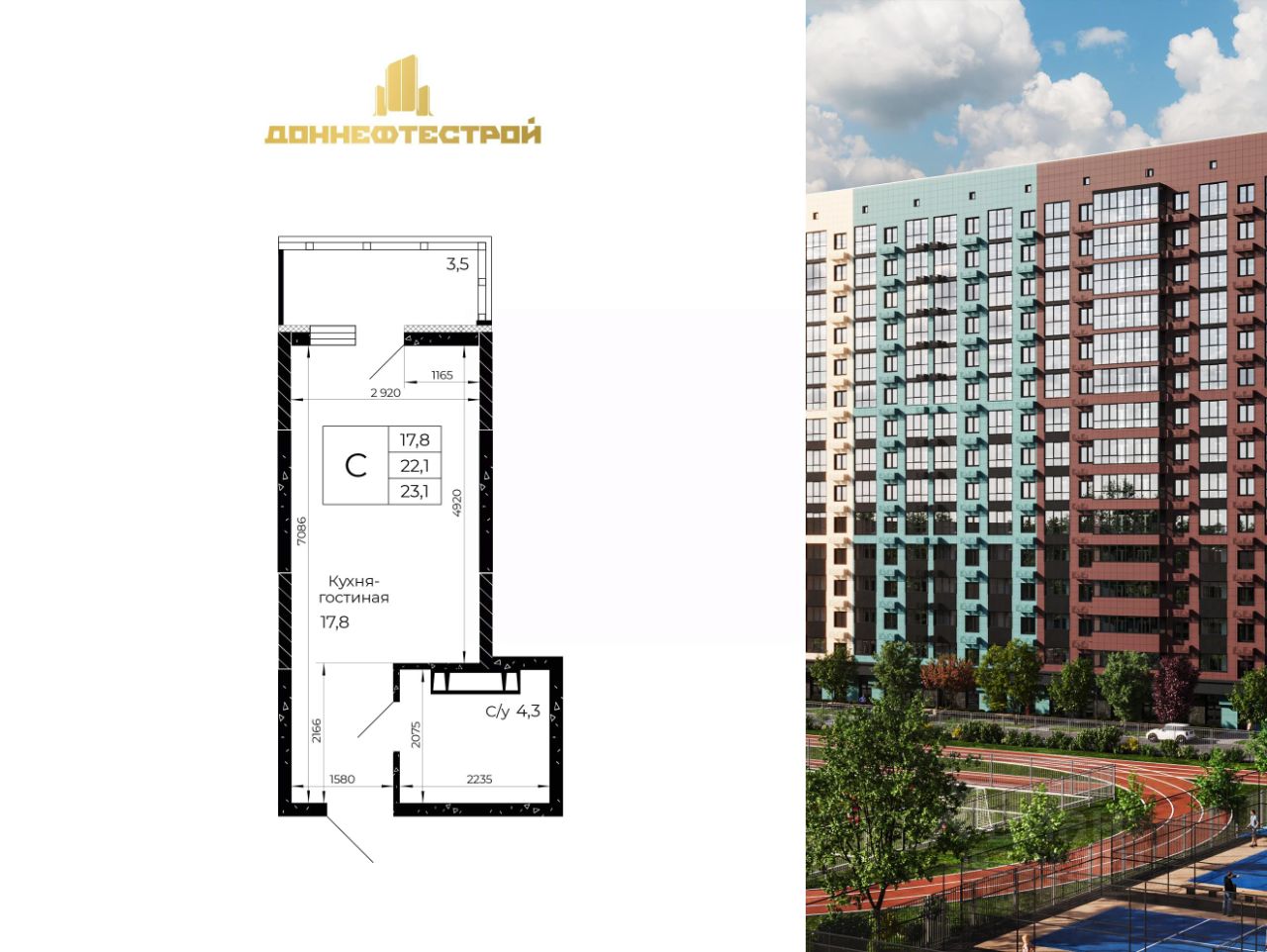 Продаётся студия в строящемся доме (Литер 4.2), срок сдачи: IV-кв. 2028, общей площадью 23.1 кв.м., на 15 этаже. Город стремительно развивается. Мы вместе с ним. Инфраструктура города пополняется новыми сервисами и полезными опциями, которые позволяют нам получать всё необходимое рядом с домом. В основе концептуального подхода СК ''ДОННЕФТЕСТРОЙ'' к развитию микрорайона ''Флора'' лежит формирование современного жилого и общественного пространства, интегрированного в живописную экологически благоприятную территорию на площади 30 гектаров. Вместе с жильём создана необходимая социальная, транспортная и коммерческая инфраструктура. В составе ''Флоры'' - два детских сада, трёхэтажная школа, физкультурно-оздоровительный центр, двор-парк с ландшафтным дизайном и фонтан.