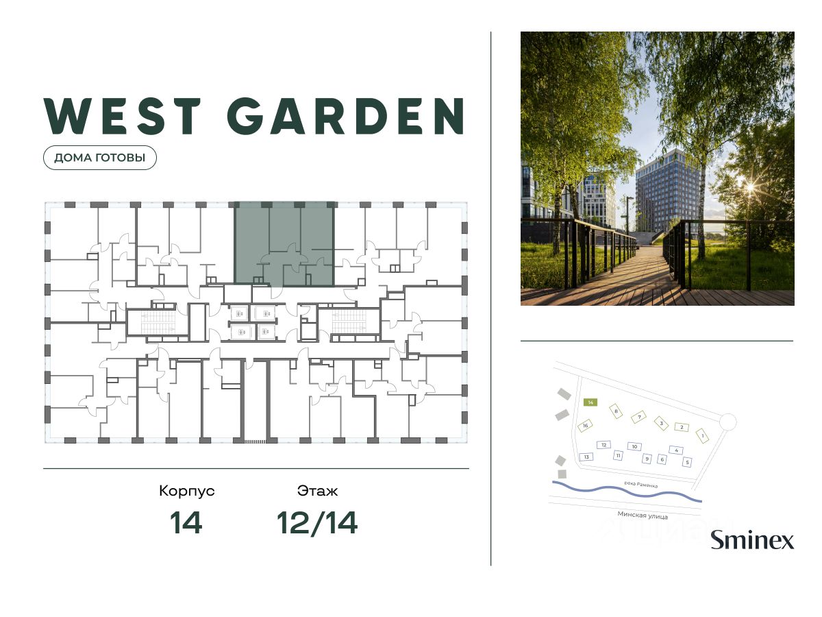West Garden - это собрание клубных домов высотой 12-14 этажей в собственном парке 16 гектаров вдоль реки. Просторный среднеэтажный квартал расположен на Минской улице, в респектабельном Западном округе столицы. Вокруг премиальное окружение и более 1000 гектаров парков.