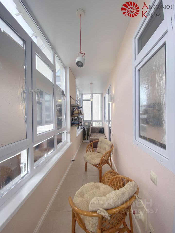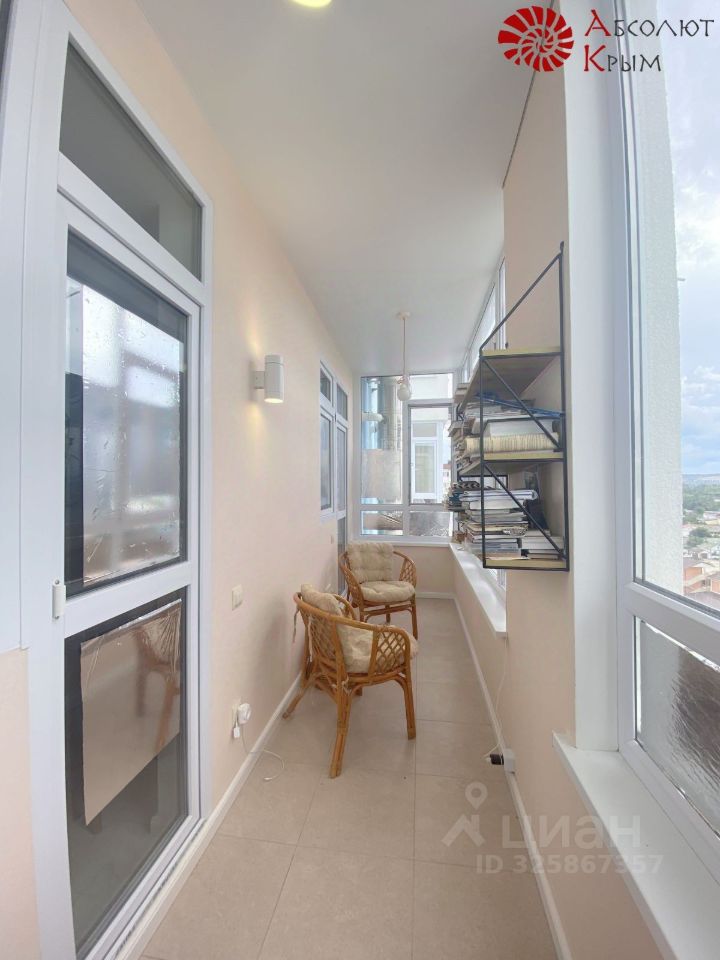 В квартире большая лоджия с панорамными окнами. Вид очень красивый, видно море, горы и город.
