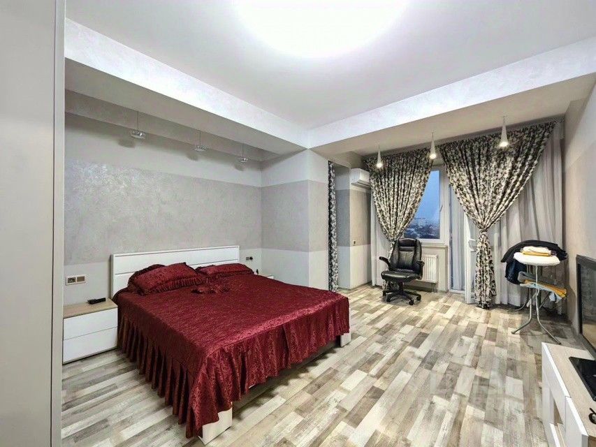 Сдается 3-ком.кварт. Республика Крым, Симферополь, пр-т Победы, 36 дом 6/12 эт. Общая площадь: 91.7 м² Площадь кухни: 10 м² Жилая площадь: 65 м² Техника: кондиционер, холодильник, плита, микроволновка, стиральная машина, посудомоечная машина, водонагреватель, телевизор. Дополнительно: панорамные окна. Тип комнат: изолированные. Санузел: совмещенный. Окна: на улицу, на солнечную сторону. Техника: кондиционер, холодильник, стиральная машина. Квартира на комфортном 6 этаже 12 этажного дома. Французское остекление большой панорамной лоджии, с которой открывается потрясающей красоты вид на город и гору Чатыр-даг. Лоджия протягивается вдоль всех комнат и кухни, выход на нее со всех помещений. Лучший вариант планировки с изолированными комнатами. С двух комнат предусмотрены выходы и на лоджию, и на отдельные небольшие балконы. Вся мебель и техника. В процессе ремонта использовались только дорогие качественные материалы. В организации пространства принимали участие опытные дизайнеры. Во дворе есть парковка как и общего пользования, так и подземная, детская площадка, ухоженная закрытая придомовая территория.В пешей доступности. ВАЖНО: 4 школы и 2 детских сада расположены в пешей доступности. Рядом с домом, также, Буденовский рынок, два магазина Яблоко, аптеки, клиника Авиценна, ветеринарный госпиталь, поликлиника #2, остановка общественного транспорта- Буденовский рынок и кинотеатр Звезда.