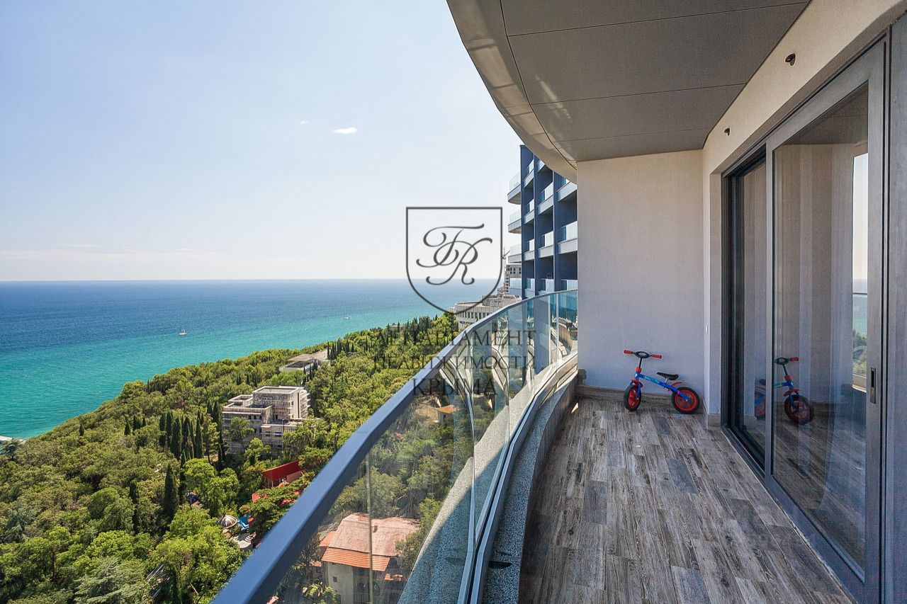 Из окон и с террасы квартиры открывается восхитительный панорамный вид на море и приморский парк.
