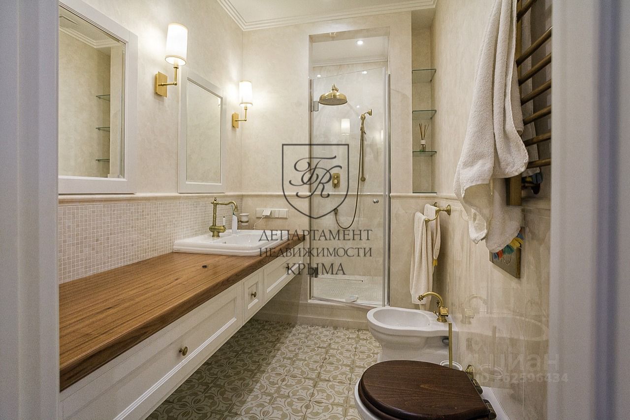 Квартира оборудована двумя санузлами с электрическими теплыми полами. В основном санузле и гостевом санузле установлена сантехника (унитаз, биде, умывальник) фабрик FRANKE OLD ENGLAND (Швейцария).