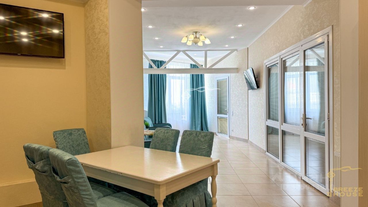 Апартаменты расположены на 6 этаже семиэтажного дома, благодаря чему, из окон открывается шикарный вид на море и город.