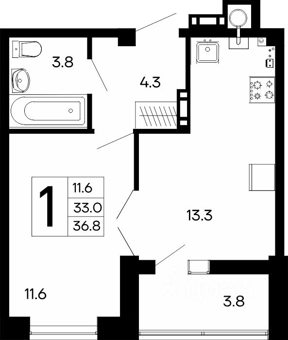 Общая площадь36,8 м2