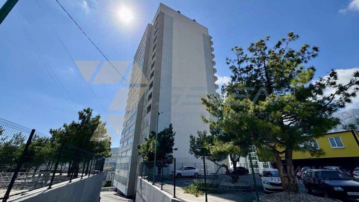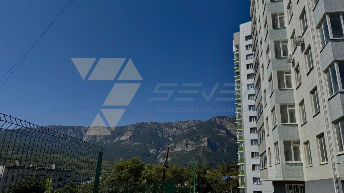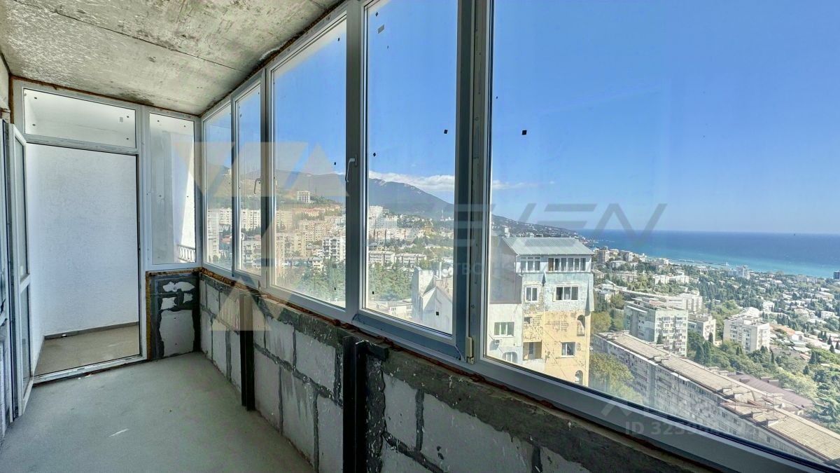 Квартира расположена на 14 этаже и обладает супервидом на Ялту и море, а также функциональной планировкой, идеально подходящей для евро-двухкомнатного формата.