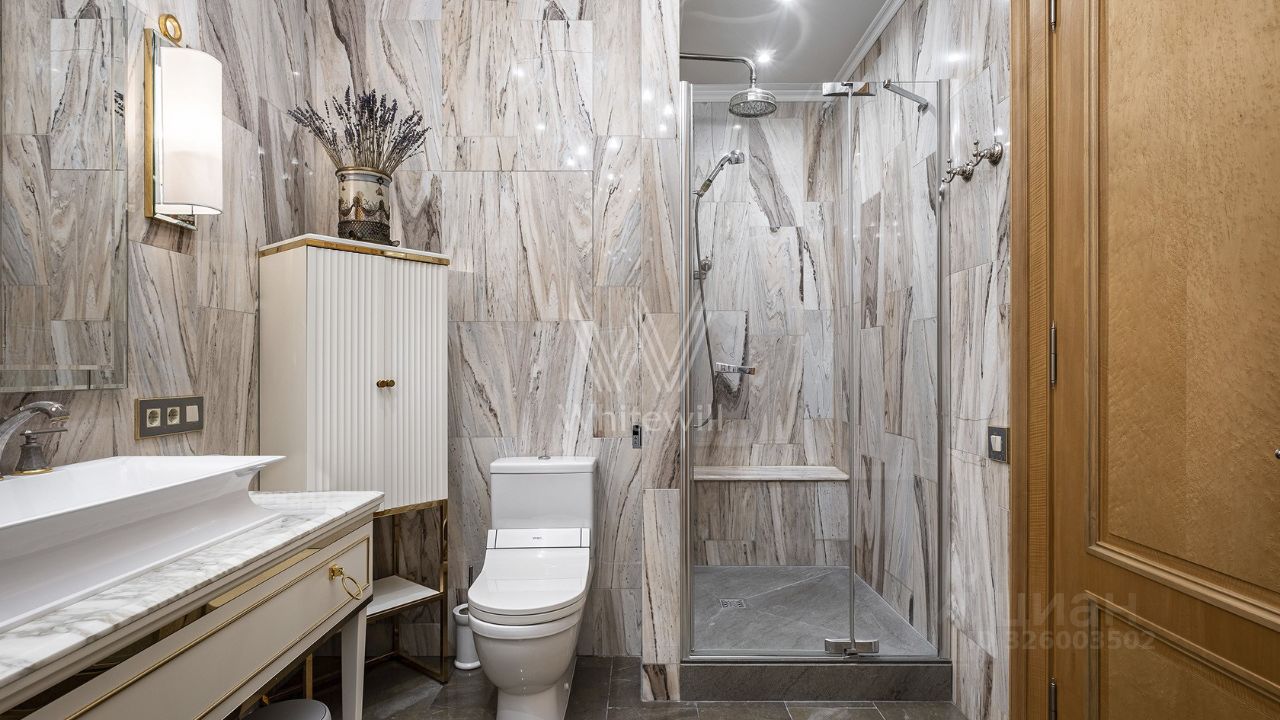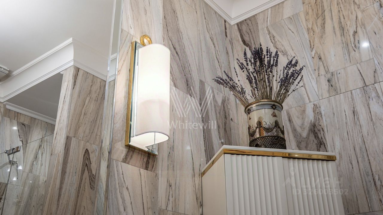 Планировкой предусмотрено: гостиная с рабочим пространством, кухня с обеденной зоной, спальня, вместительная проходная гардеробная, два санузла. Установлена приточно-вытяжная система вентиляции и кондиционирования, стиральная машина с режимом сушки, подогрев полов.