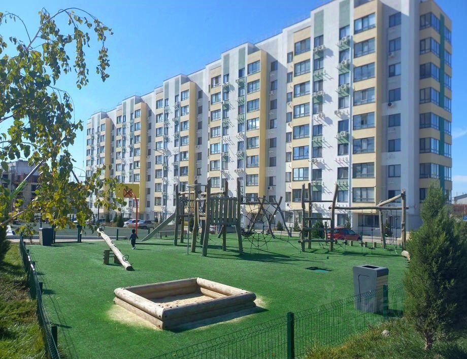 Новый дом, наземная парковка, детская и спортивная площадки.