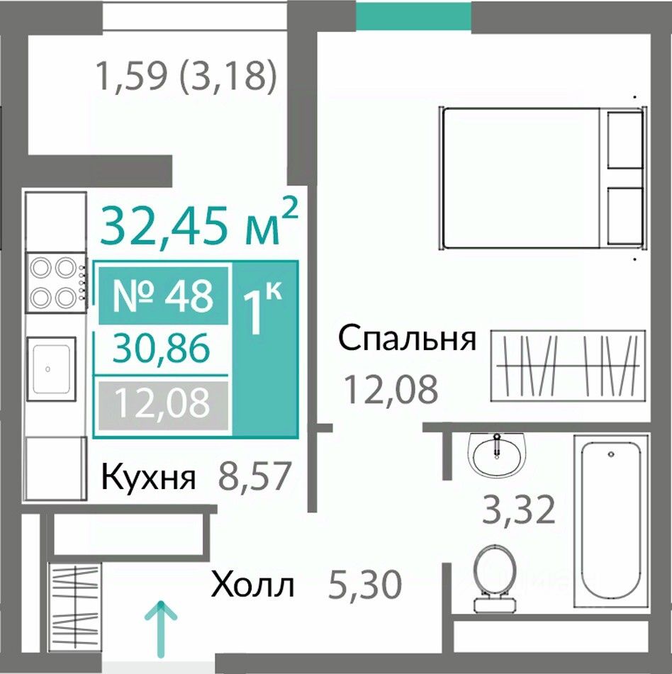 Продаётся 1-комнатная квартира в строящемся доме (9 этап (Секция Б9.2)), срок сдачи: I-кв. 2027, общей площадью 30.86 кв.м., на 8 этаже. ОТКРЫВАЕМ НОВЫЕ ГОРИЗОНТЫ