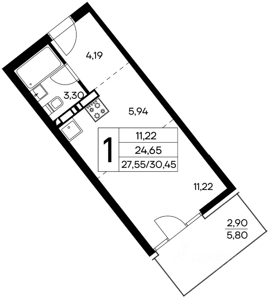 Общая площадь30,66 м2