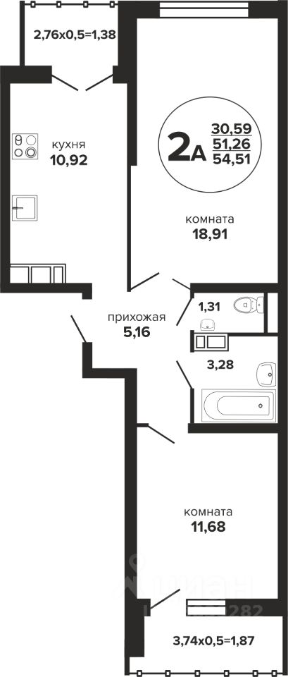Общая площадь54,51 м2