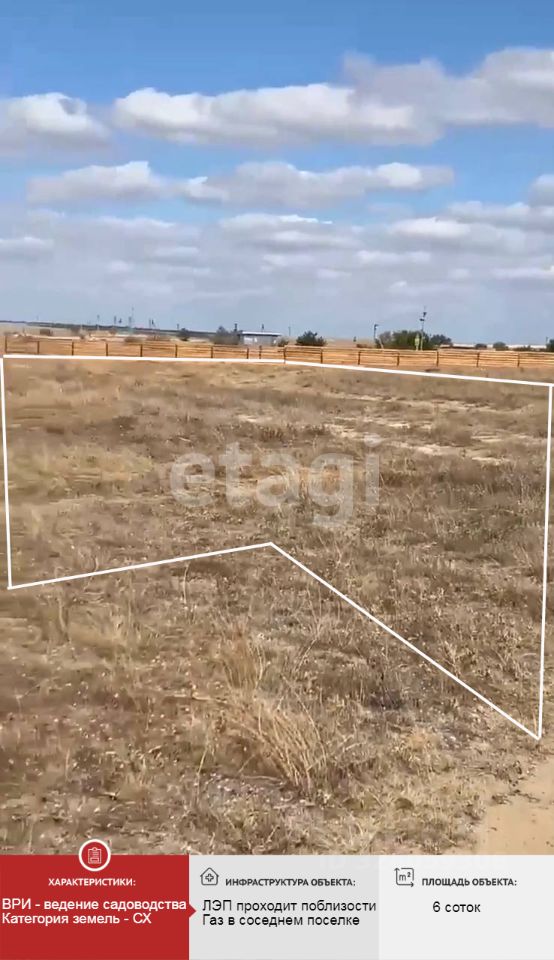 Участок ровный, без уклона и каких-либо повреждений. Рядом жилая застройка. Территория огорожена забором, соседи уже начали стройки. Вид разрешенного использования - ведение садоводства. Есть возможность построить капитальное строение.