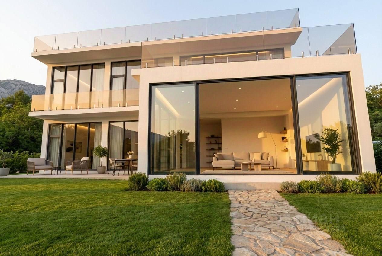 Экстерьеры: фасад дома утеплен, как позволят погодные условия осуществим финишную отделку камнем и декоративной штукатуркой, эксплуатируемая крыша уже покрыта плиткой. Панорамные энергосберегающие окна из теплого алюминия с напылением Солар, раздвижные порталы.