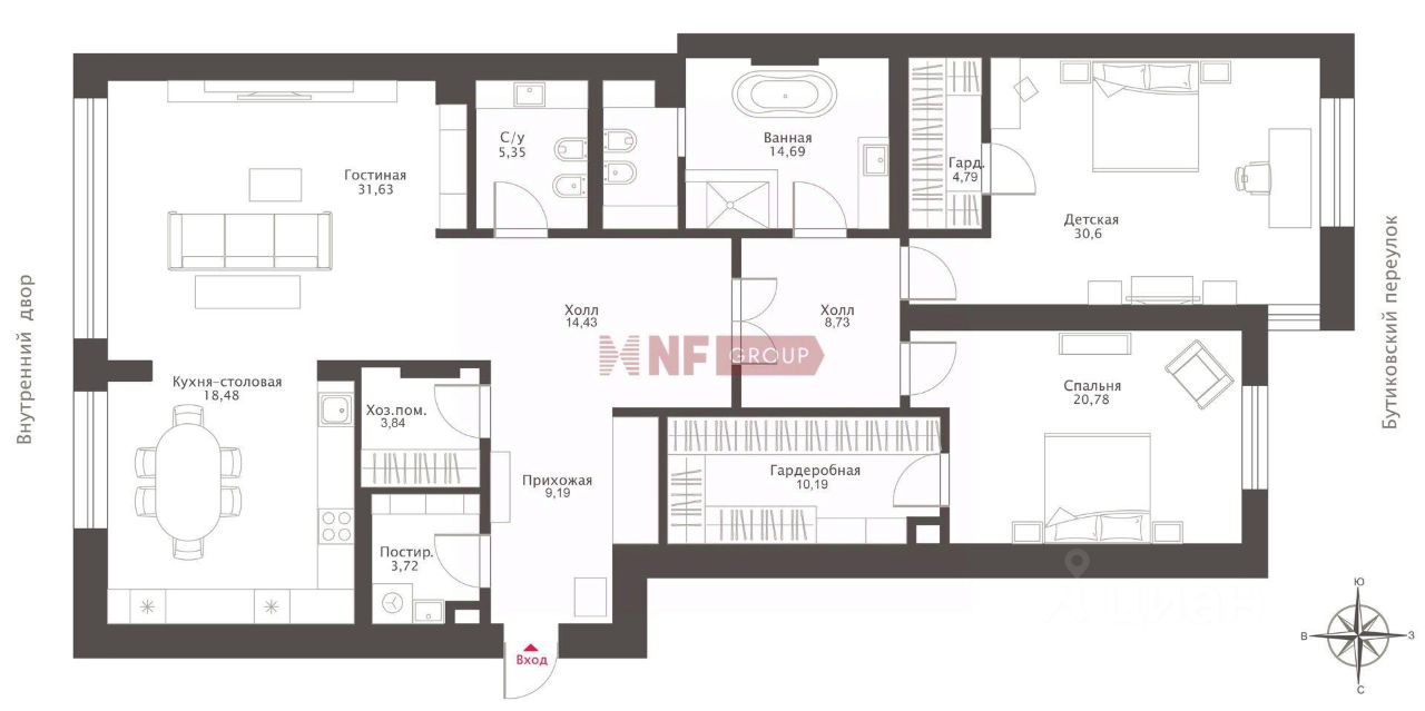 Лот: 101865. В продаже квартира с отделкой в клубном доме ''Новая Остоженка'' на Золотой миле. Планировка: гостиная с зоной кухни-столовой, 2 спальни с собственными гардеробными, ванная комната, гостевой сан. узел и постирочная. Выполнена отделка в стиле современной классики, квартира меблирована и оснащена качественной бытовой техникой. Окна выходят в тихий переулок и во двор. Высота потолка 3,2 м. В комплексе предусмотрен подземный паркинг с возможностью покупки машино-мест. Квартира расположена в клубном доме на Остоженке. Огороженная благоустроенная территория, профессиональная служба охраны, удобный доступ ко всей инфраструктуре.