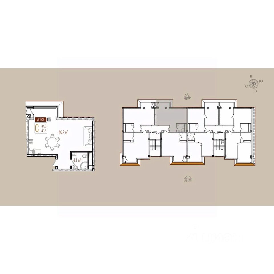 Общая площадь44,3 м2