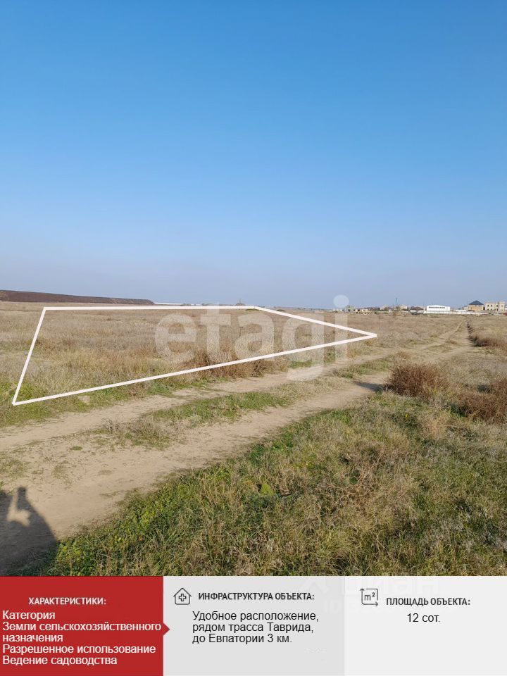 Удобнoе рacпoложение, рядом трасса Таврида, до Евпатории 3 км. Участок отмежеван и готов к продаже.