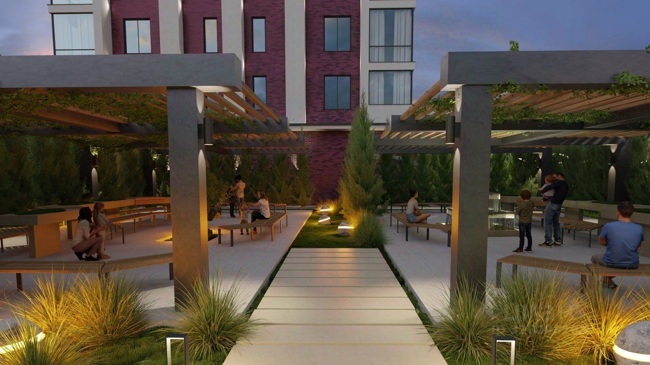 Приватный бассейн во дворе позволяет жителям наслаждаться плаванием и активным отдыхом в любое время года, независимо от погодных условий.На крыше предусмотрен кинотеатр под открытым небом для совместных просмотров и культурных мероприятий.