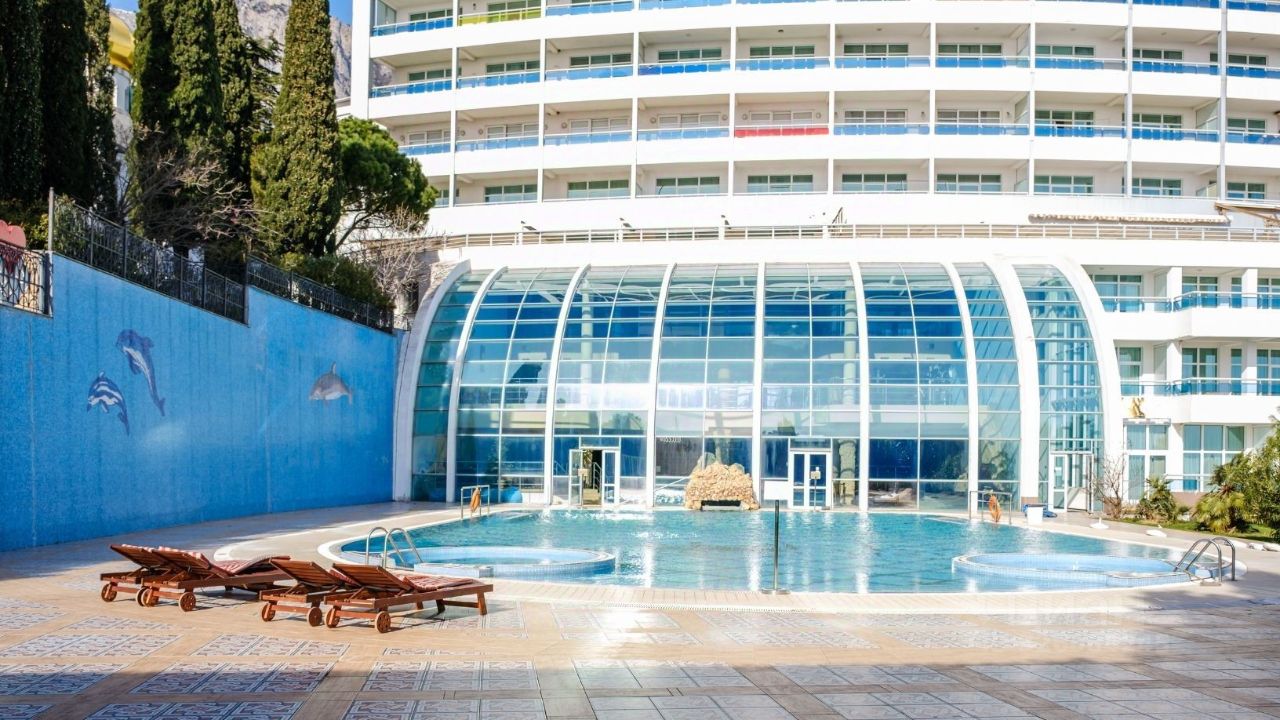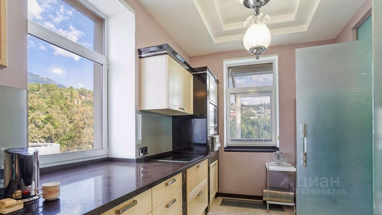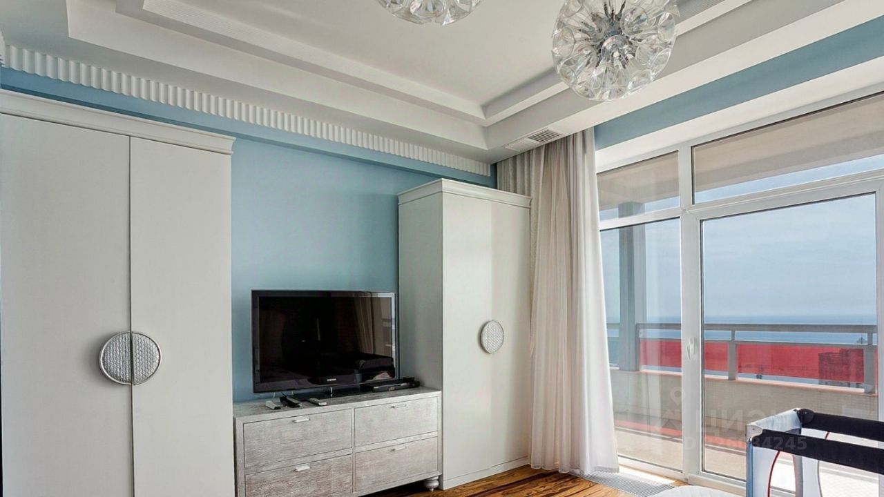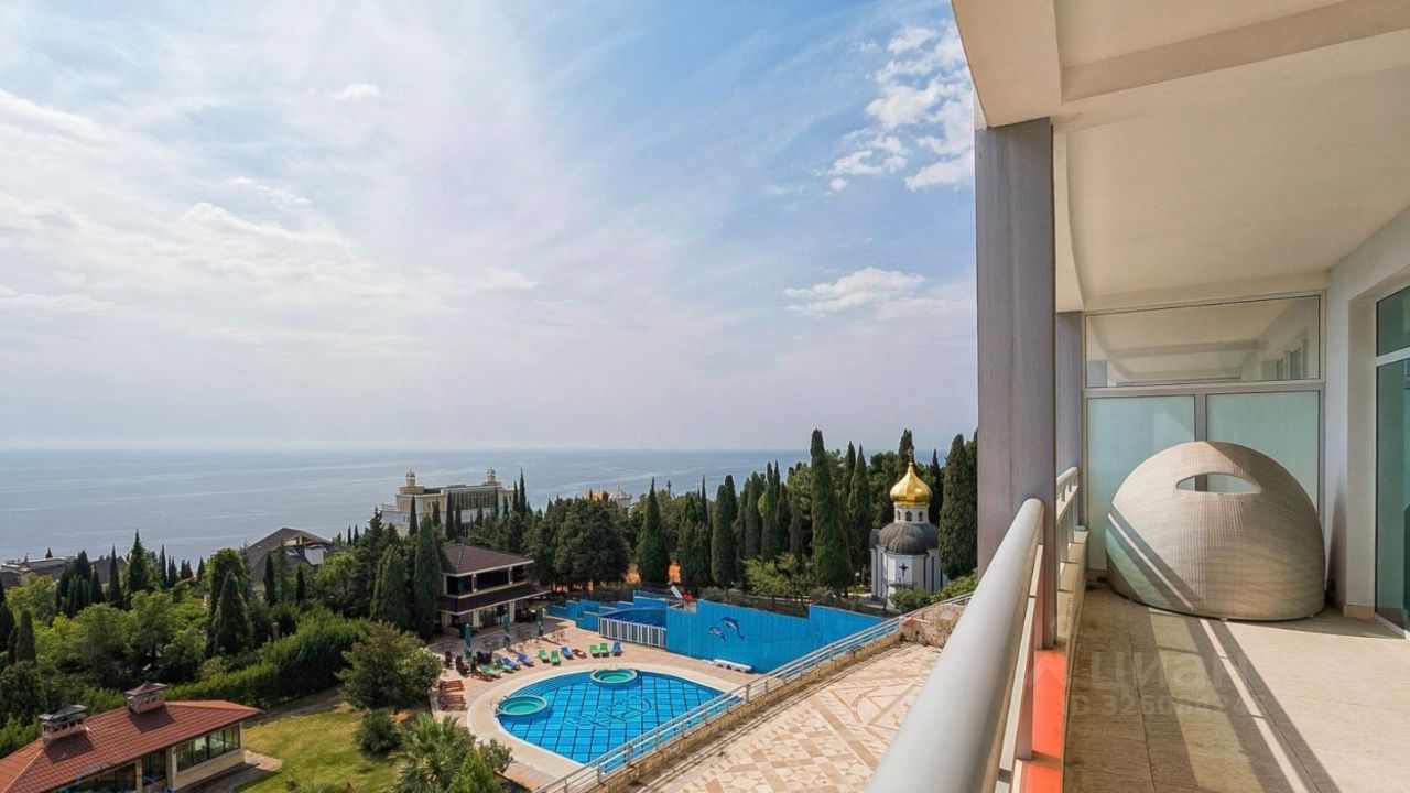Роскошная четырехкомнатная квартира с террасой и панорамным видом на море, расположенная на 2 этаже (по факту 5) в 15-этажном корпусе ''Парус'' элитного жилого комплекса Respect Hall Resort & SPA, в Кореизе, в 800 метрах от живописного побережья Черного моря.