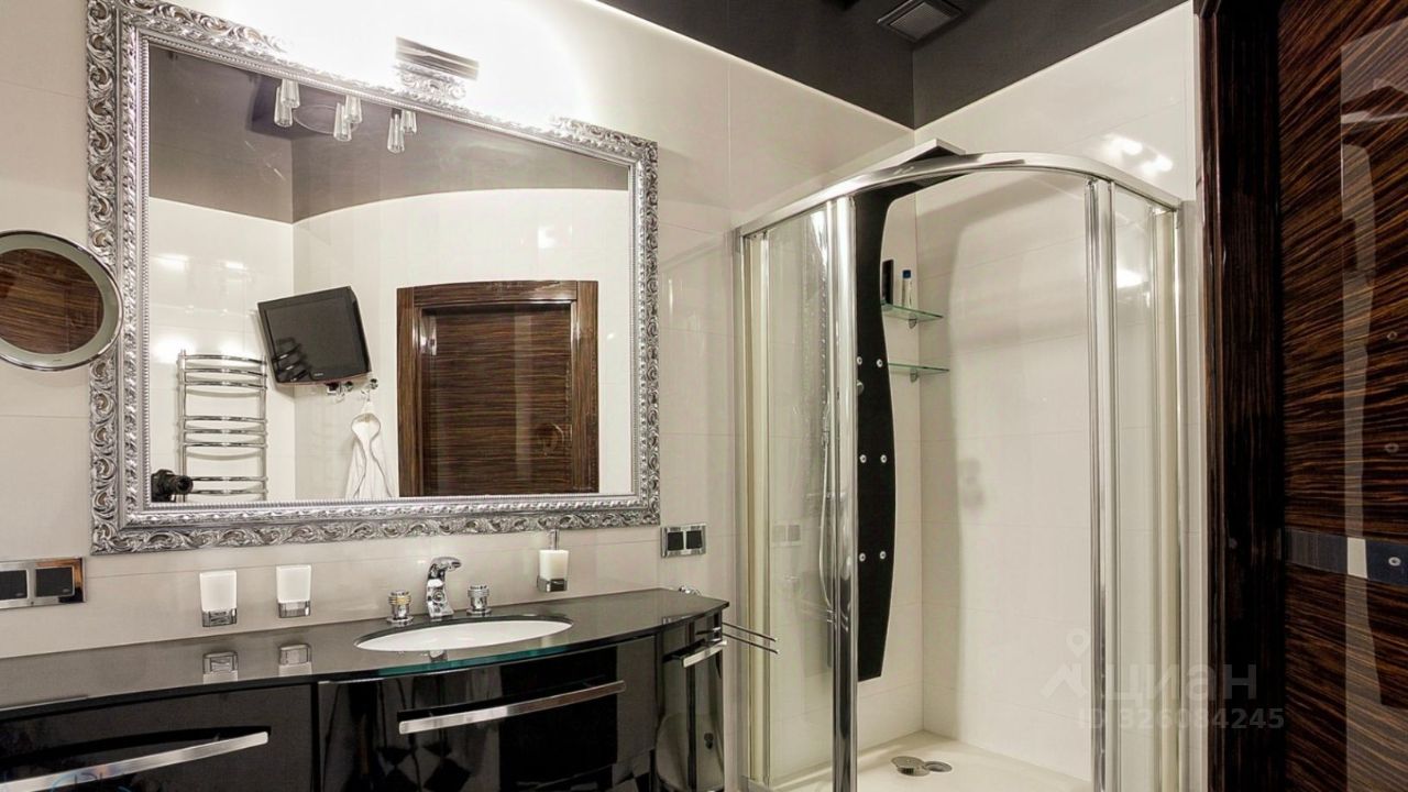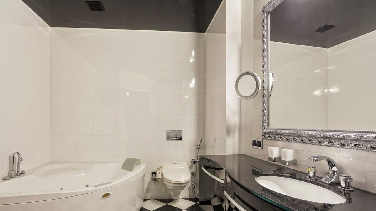 Выполнен современный ремонт, квартира полностью меблирована и оснащена техникой. Установлена система кондиционирования, пол — ламинат и плитка.