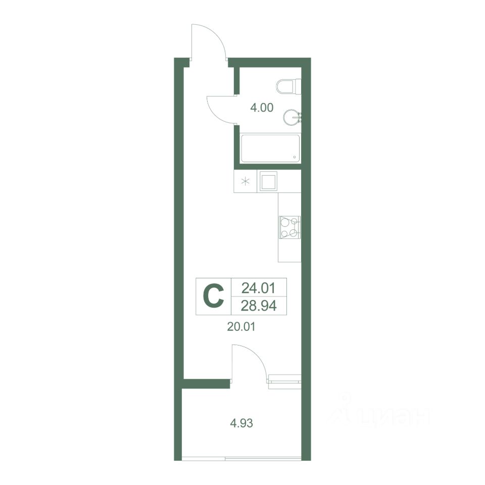 Общая площадь29,3 м2