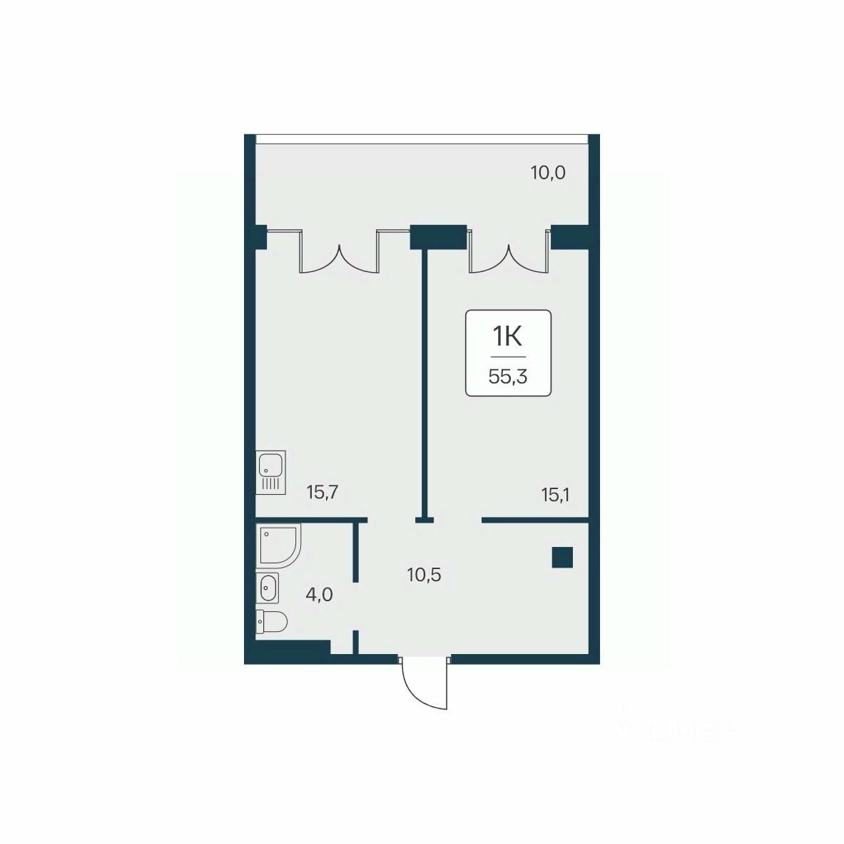 Общая площадь55,3 м2